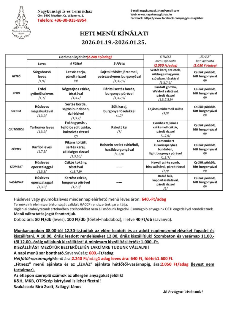 Menü változtatás jogát fenntartjuk.