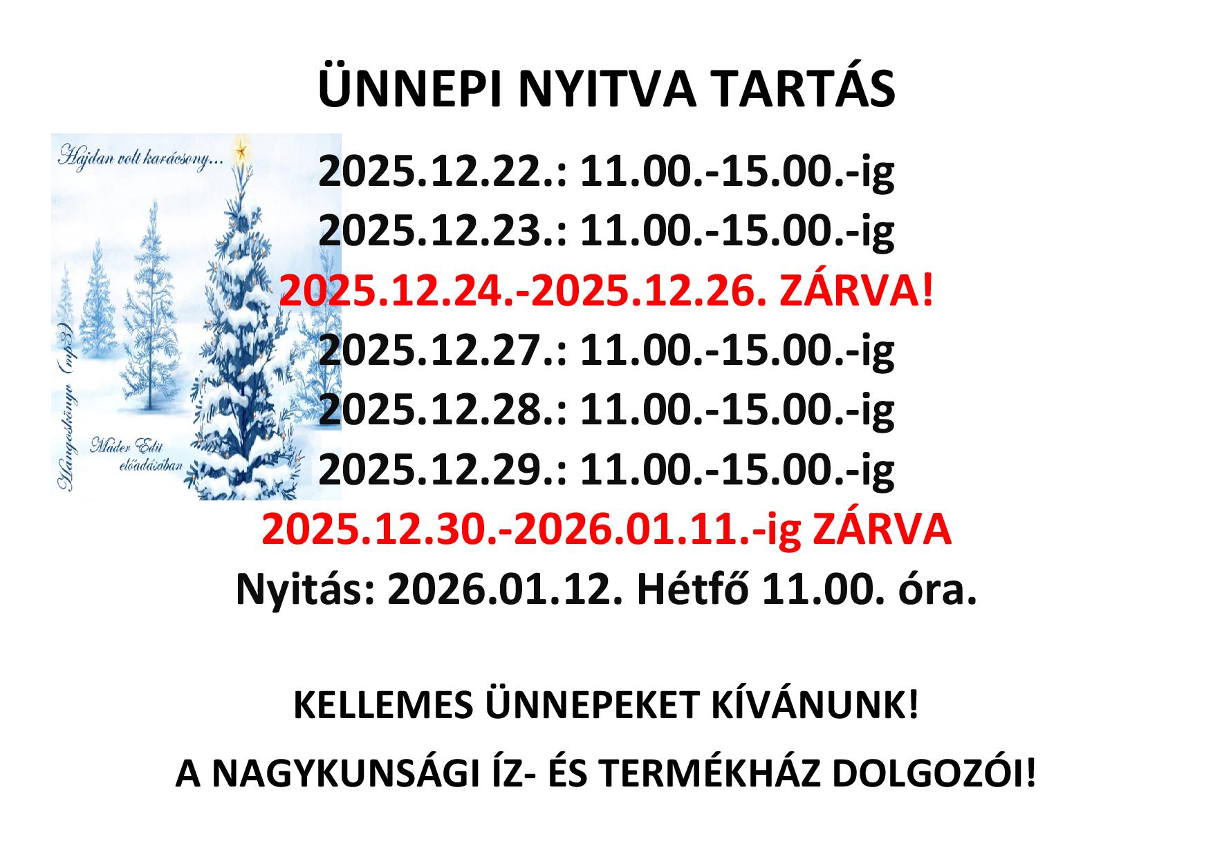 Vasárnap: 11:00 – 15:00